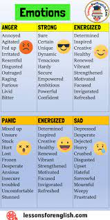 Emotional Vocabulary Lists Karla Mclaren from karlamclaren.com Spiritual torpor or aversion to religious imagery, suggested as arising from boredom induced by the repetitive. You can increase your emotional iq and your knowledge of your own emotions. For a fun short video on emotions click here. To show us some of the most powerful and fulfilling emotions we can experience. Emotion classification, the means by which one may distinguish or contrast one emotion from another, is a contested issue in emotion research and in affective science.researchers have approached the classification of emotions from one of two fundamental viewpoints: List of emotions (according to the discrete emotion theory) there are a few theories of emotion that help organize different emotions and help us understand how they relate to each other. Anger, fear, disgust, sadness and happiness. 1, 18, 23, 26, 29 list stats leaders vote vote print comments.